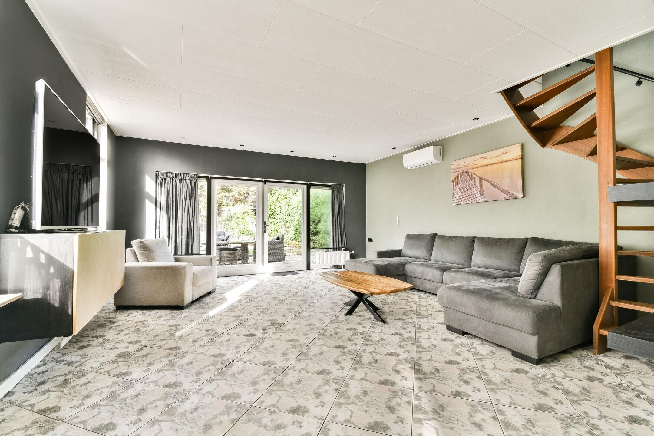 De badkamer bevindt zich praktisch op de begane grond, terwijl de etage vijf slaapkamers telt, allen uitgerust met een dakkapel. De riante woonkamer met airconditioning biedt via openslaande deuren direct toegang tot de diepe en deels aangelegde hoofdtuin. Hiernaast zorgen 14 zonnepanelen voor lage lasten en een fijne toekomst.