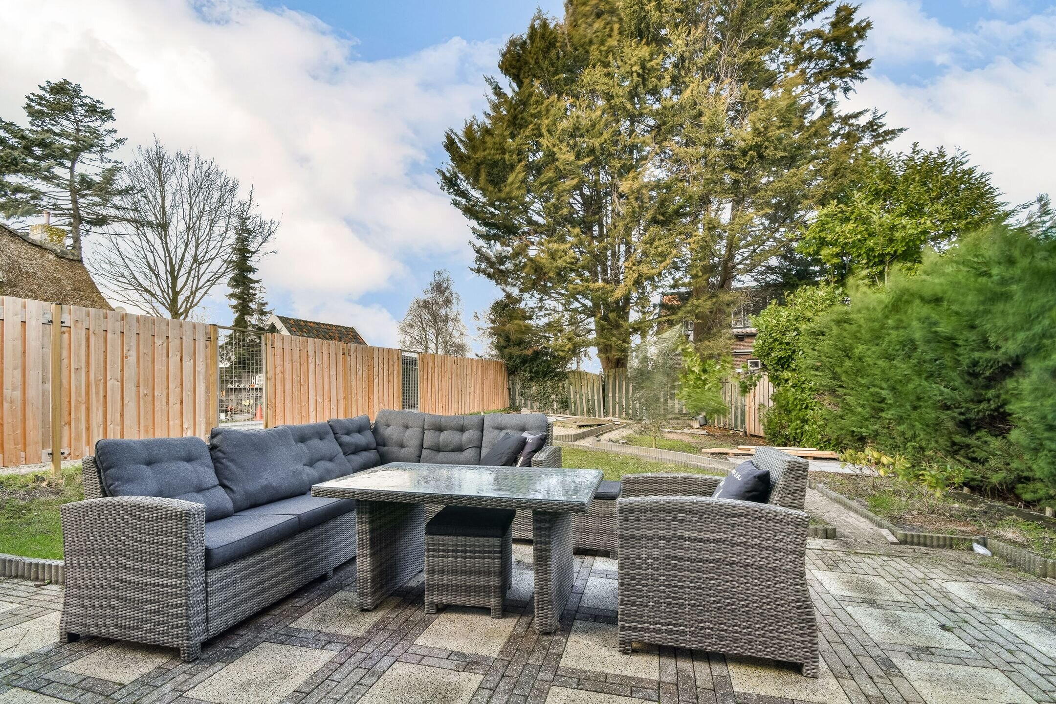Voor de woning ligt een ca. 5 meter diepe voortuin, welke grotendeels is betegeld en ruimte biedt aan meerdere auto's. Van hieruit is er een toegang tot de heerlijke, privacy-volle en volledig omheinde hoofdtuin welke recent is voorzien van een nieuwe schutting. Ook stap je, via de openslaande deuren in de woonkamer, direct het betegelde gedeelte op van deze ca. 16 meter diepe hoofdtuin. De tuin is deels aangelegd met een gazon en diverse plantenborders. Hier ligt een mooie mogelijkheid voor het verder vormgeven van de tuin.